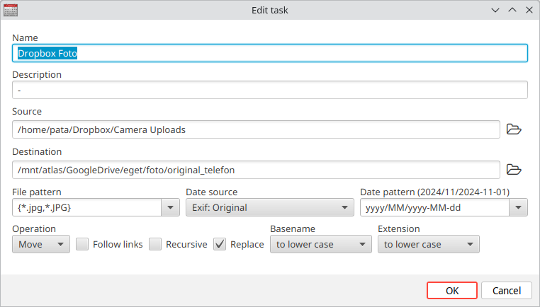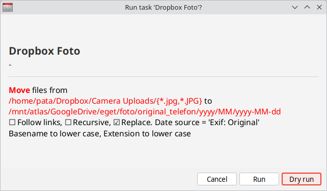 FileByDate is a tool that moves and copies files to a destination directory based on either file or exif dates and the user specified date pattern.